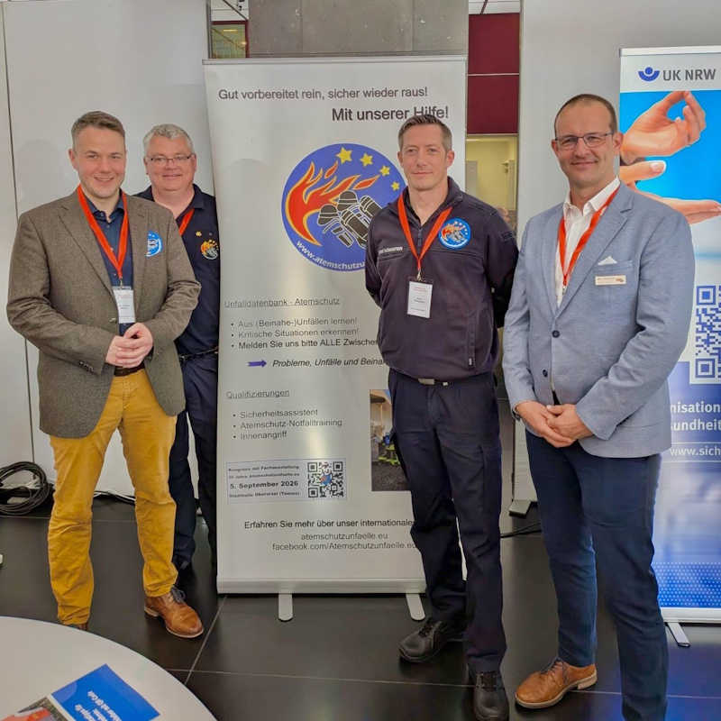 Zwischen den Vorträgen wurden Marktplatzgespräche zu verschiedenen Themen und eine Fachausstellung angeboten, an der auch Atemschutzunfaelle.eu teilnahm. Aus dem Team Atemschutzunfaelle.eu waren Björn Lüssenheide, René Königstein, Guido Volkmar und Dr. Adrian Ridder vertreten.